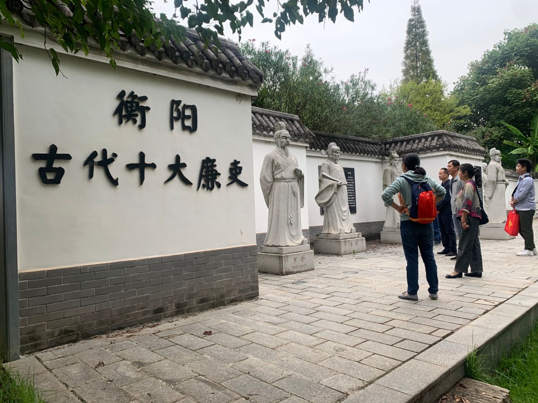 首先,党支部全体成员参观了衡阳市廉政文化雕塑园。它位于衡阳市高新区蒸水河东堤风光带,是目前该省第一个廉政文化雕塑园。园内设有警钟楼、清风亭、32座历代廉政名人塑像、40处景墙壁刻和20处石刻等。