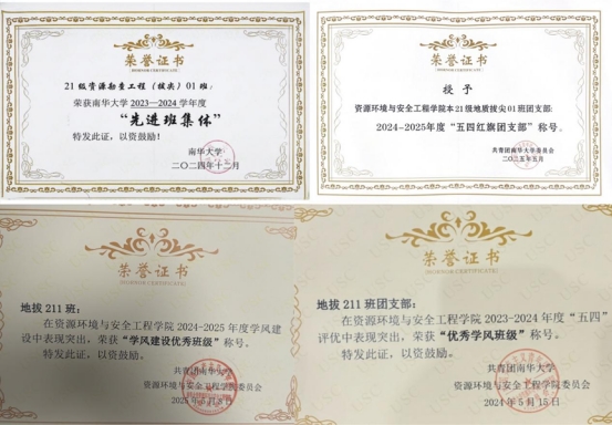 班级集体荣誉感很强,他们曾荣获学校“五四红旗团支部”“学风建设优秀班级”“优秀班集体”“优秀团支部”等多项集体荣誉。在地拔班,集体荣誉从不是个人的事。辅导员赵玥老师和班主任段先哲老师会及时提醒申报并辅助材料准备;“一团一品”团支部比拼中,团支书吴启云积极准备材料,侧重从本班科研优势入手。肖天赐、李展鹏、张国秀等八位同学为此特意制作了PPT,班长吴丕金说“正是因为每一位同学都愿意积极递交材料,才有了这么多集体荣誉。”