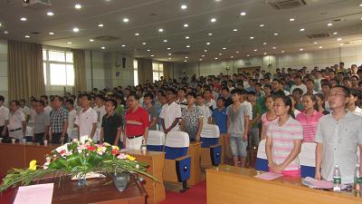 9月11日下午,核资源与核燃料工程学院于图书馆学术报告厅隆重召开2012级本科新生开学典礼暨入学教育。出席此次会议的有副校长丁德馨、院党政领导,各系(科、室)主任、全体辅导员老师、教务老师、新生班主任、老生代表、2012级全体本科新生。此次会议由院党委副书记李望平主持。