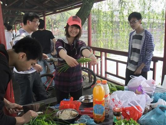 返回途中,大家的兴奋劲儿依然溢于言表。当天,我们都有许许多多第一次的尝试:第一次做饭,第一次幕天席地吃饭,第一次师生们一起开心得玩闹……