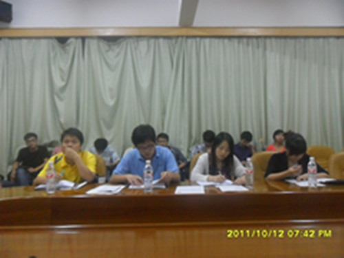 2011年10月12日晚,核资源与核燃料工程学院新一届团学干部招聘大会在院会议室拉开帷幕。前来竞聘的同学都自信满满,谈到对应聘的部门的认识与规划、团学工作存在的问题及解决办法等,并表示要更好的配合老师的工作,全心全意为同学服务。招聘会上不断涌现“快乐学习-快乐工作”、“校园环保”、“重塑自我”、“团学文化”等新思路。院团委书记杨婷老师、学工室李春光老师及主席团成员、各部门部长参加会议并担任评委。 据悉,本次竞聘会历时两天,共有53人参加,为学院团学工作的进一步开展打下了基础。
