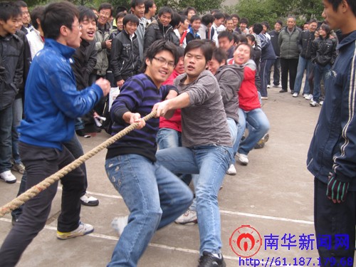 11月29日下午,核资源与核燃料工程学院在图书馆旁灯光球场举行拔河比赛总决赛。本次拔河比赛由我院体育部举办,全院大一、大二分小组参加了比赛,经过28日的激烈角逐,每个年级均有三支队伍进入决赛,今天的比赛将最后决出各个年纪的前三甲。 比赛还未开始,现场早已是人头攒动。小组争霸赛在矿资081班与矿加081班的激烈的拉锯战中拉开了帷幕,双方势均力敌,不相上下,全场呼声一片,现场的气氛一次又一次的被推向了高潮。最后,经过三轮苦战,矿资081班以2:1力克矿加081班,荣摘小组争霸赛之大二年纪桂冠。由于大一各班实力相当,难决高低,最终资堪091班、安工091班与核化091班并列小组第一。 在甲流肆虐之际举办拔河比赛,既有利于带动大家的运动热情,放松心情,锻炼身体,又能加强团队精神,增强大家的班级凝聚力与荣誉感,为创建和谐南华添砖加瓦!