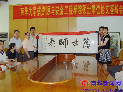 在本次献礼活动中,毕业生向学院赠送了一块题为“万世师表”的大匾和一幅山水画。这蕴含着核资源与安全工程学院深厚的文化内涵和老师们爱岗敬业、献身教育的崇高品质以及师生之间浓浓的情谊。在赠送仪式上,处处绽放着喜悦的笑容,毕业生代表们对学院老师多年来的谆谆教导表示衷心的感谢并真诚地表达了对学院的美好祝愿。学院领导老师们也祝福同学们在今后的工作岗位上能够有所作为,将“勤勉务实、甘于奉献、刚健自强、敢为人先”的南华精神发扬光大,创造人生的辉煌。同时,老师们也希望毕业生们永远不要忘记母校、忘记老师,母校的领导老师们任何时候都欢迎大家回来看看。