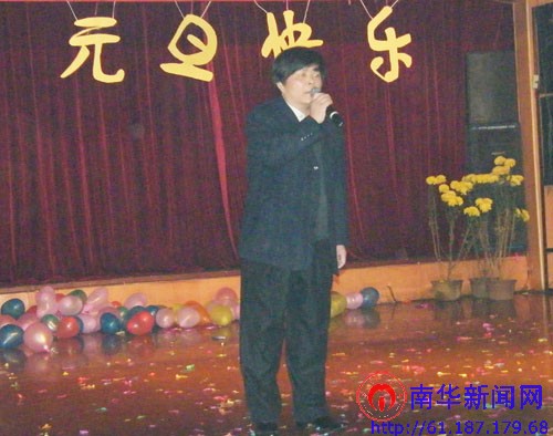 副校长丁德馨为晚会唱歌助兴