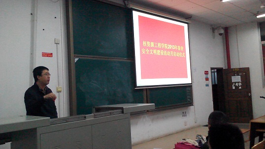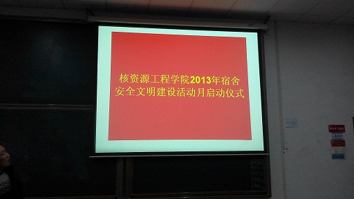 核资源工程学院2013年宿舍安全文明建设活动月启动仪式圆满结束,启动仪式后,大家充分认识到宿舍文明安全、食品安全及学风问题持续改善的重要性和紧迫性。相信在今后的学习生活中,同学们在这些方面会更加注意,实现文明建设,展现核资风采。