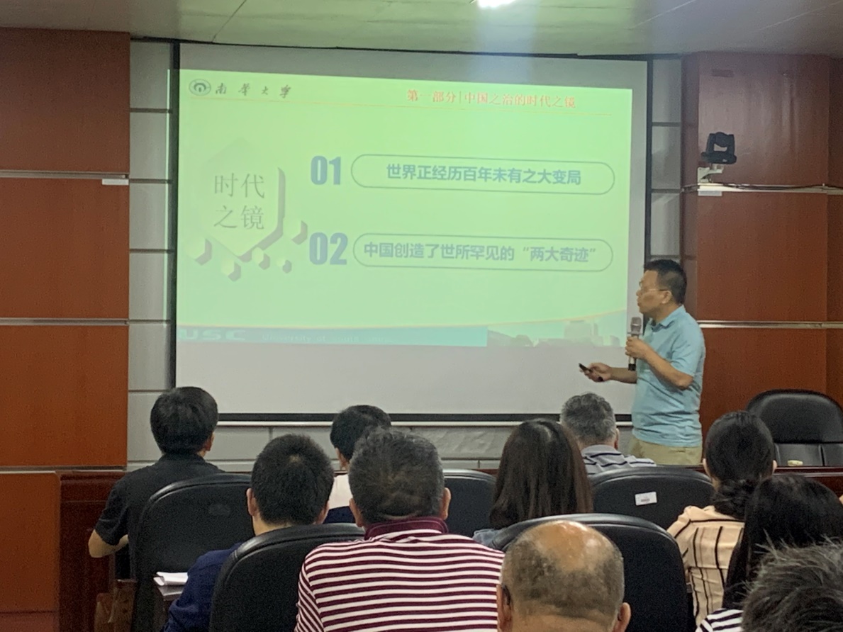 首先,学院特邀马克思主义学院的院长黄秋生教授给我院教职工进行理论培训,此次理论学习的专题是“党的十九届四中全会”(坚持和完善中国特色社会主义制度,推进国家治理体系和治理能力现代化)。黄秋生教授从世界正经历百年未有之大变局,以及中国创造的世所罕见的“两大奇迹”等几个方面向各位老师生动的讲述了“中国之制”彰显“中国之治”的显著优势。