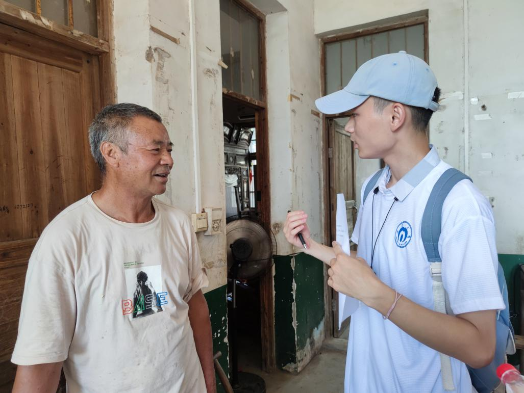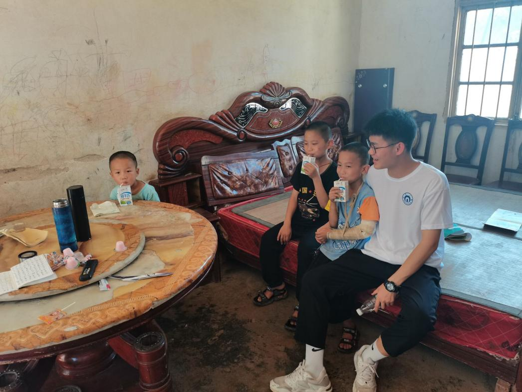 来到村民家中,服务团的成员递上准备好的慰问品。一部分成员向家长了解孩子的情况,另一部分的成员则与小朋友交流玩耍。通过陪伴与交流,逐渐走入小朋友的内心,去了解小朋友们的心理状况。印象最深的是一对双胞胎,哥哥和弟弟的奖状挂满了整面墙壁。但当成员问及未来的梦想以及是否想上大学时,小朋友只是迷茫的眨了下眼睛,摇了摇头。