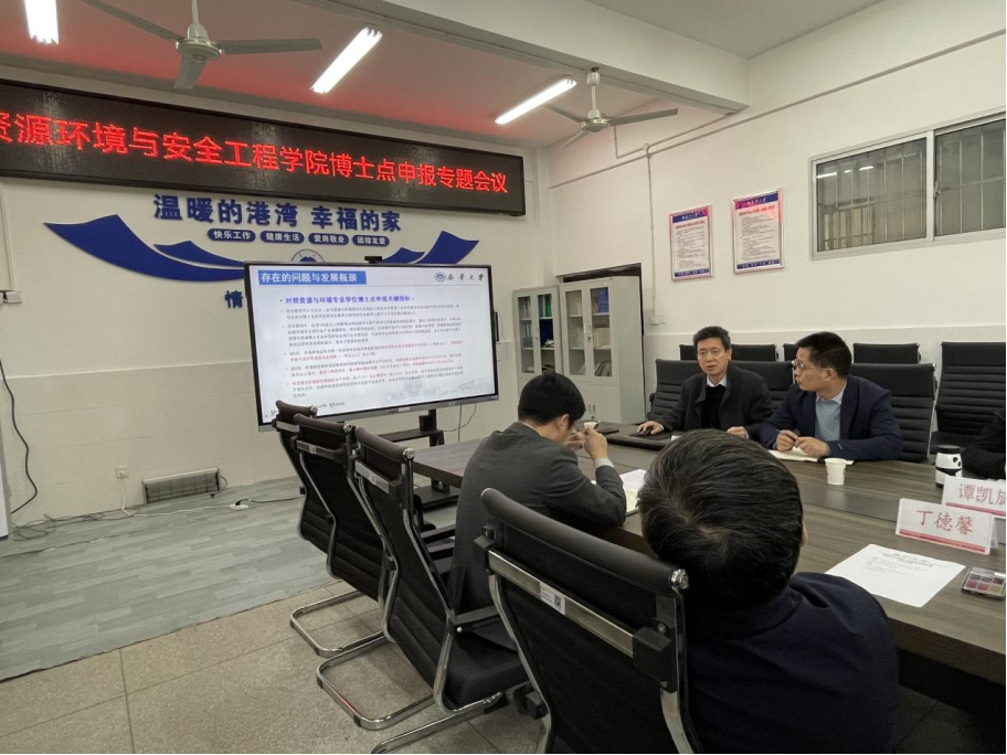 会议首先由戴剑勇进行博士点申报专题汇报。他就目前资源与环境博士点申报材料准备情况进行了介绍,强调了学院申报博士点面临的机遇与挑战,指出了博士点申报的现状与问题,同时给出了自己的思考与对策。