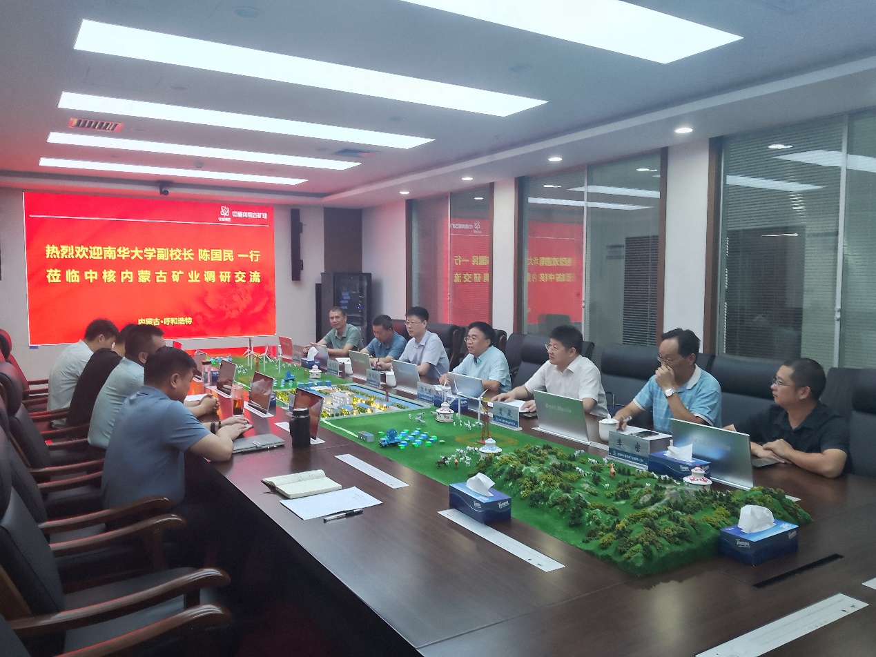 2023年7月20日,伟德bv1946副校长陈国民、教育发展与校友联络办主任李先国、伟德国际victor1946院长张志军、副院长戴剑勇、矿物资源工程系主任曾晟、环境科学与工程系教授张晓文、李密一行到中核内蒙古矿业有限公司调研交流。总经理阳奕汉主持召开座谈会,副总经理姚光怀、处长张传飞及相关部门负责人参与调研交流活动。