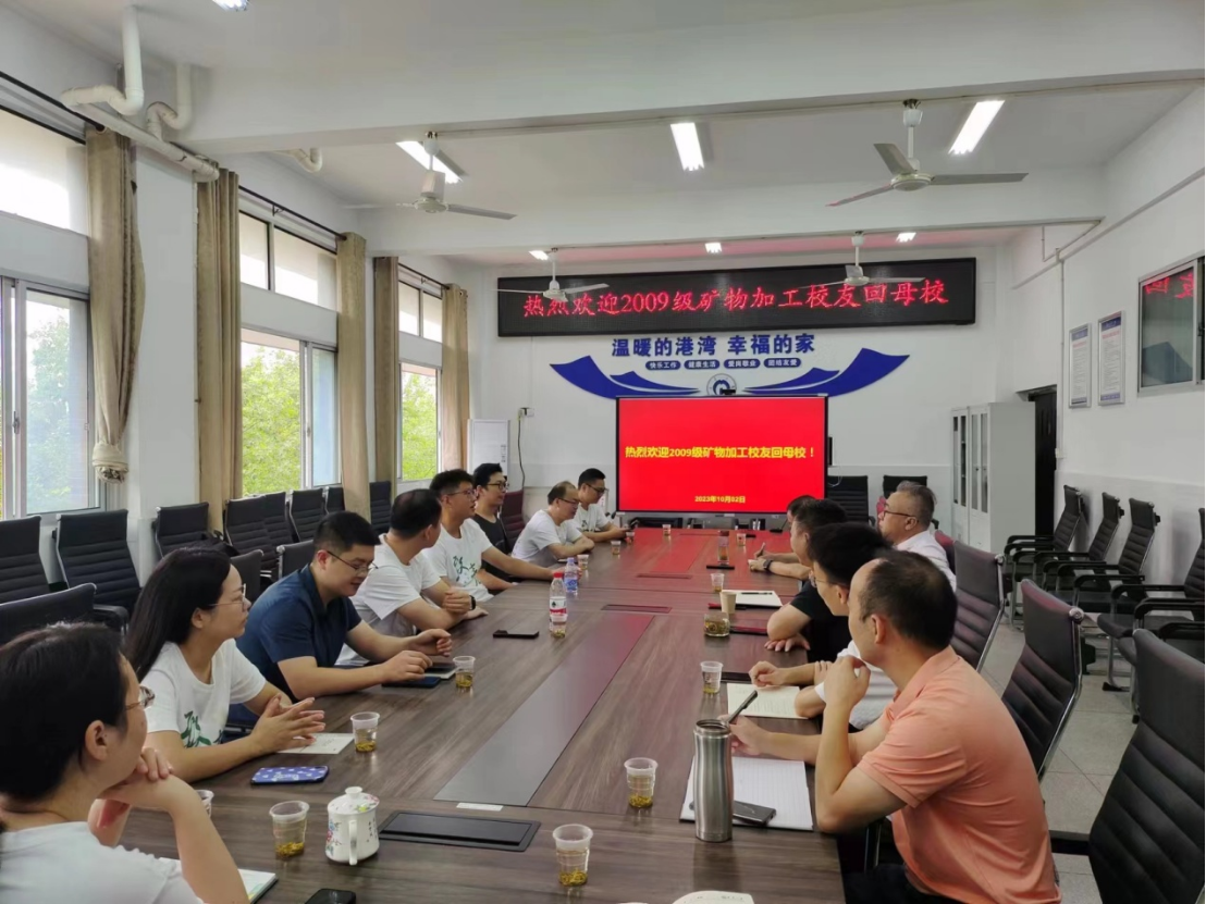 2023年金秋十月,秋高气爽,在美丽的红湘校园,我院矿物加工专业13届毕业生相聚母校,重温师生情、同学情。学院领导非常重视本次校友聚会活动,学院党委书记李广悦、副院长王清良全程参与。2023年10月2日上午,矿加091班毕业十周年聚会庆典在学院305会议室成功举行。会议由毕业生易鑫主持,回校的毕业生有8人,参加会议的老师有学院党委书记李广悦、副院长王清良、支部书记胡鄂明和史文革、胡凯光、李会娟、李乾、胡艺博等。团支部书记谢鑫同学首先代表全体同学发言,然后李广悦书记介绍了学校和学院的发展状况,王清良副院长作为当年的班主任回顾了当年同学们的优良表现,对同学们毕业10年取得的成绩进行了充分肯定,并对未来发展提出了希望。接着同学们逐一畅谈和汇报了毕业10年来的工作和生活体会,并对专业建设发展、学弟学妹们的学习就业提出了宝贵的意见和建议。