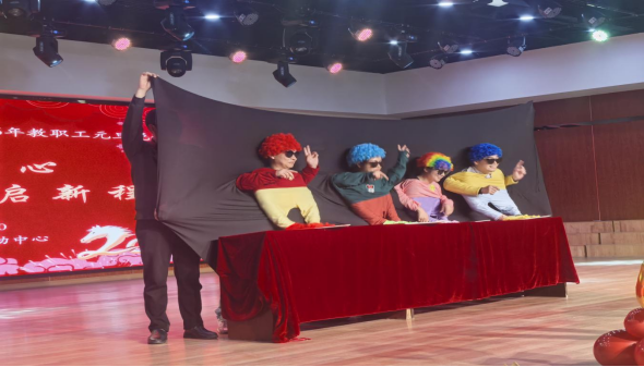 本场晚会不仅是欢庆佳节的文艺盛宴,更是学院教职工精神风貌与时代情怀的集中展示。来自学院各系室、实验中心、行政岗位的教职工们从讲台、实验室走向舞台,紧密围绕时代主题与学院发展,奉献了一场格调高雅、内容丰富的精彩演出。开场舞蹈《恭喜发财》与《小人舞》迅速点燃了现场喜庆氛围;小提琴合奏《新春乐》悠扬婉转,寄托了对新年的美好祝愿;三句半《勘探欢歌贺新年》、《矿石里的黄金梦》以专业特色为基底,用幽默质朴的语言生动展现了地质工作者科技报国、不懈探索的豪情与梦想;歌曲《千千阙歌》《真心英雄》及《歌曲连唱》唱出了深厚的情谊与昂扬的斗志;舞蹈《世界赠予我的》与《牛津树英语小故事》表演更是展现了教职工的多才多艺与生活热情;朗诵《毛泽东诗词》及《中国脊梁》铿锵有力,颂扬了伟大的民族精神与时代担当,将晚会推向一个情感高潮;最后合唱《年代金曲串烧》引发全场共鸣,在熟悉的旋律中凝聚起共同奋进的力量。