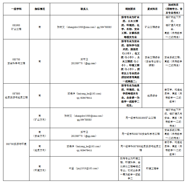 根据《2020年全国硕士研究生招生工作管理规定》(教学〔2019〕6号)、《伟德bv19462020年硕士研究生复试与录取工作方案》和《伟德国际victor19462020年硕士研究生调剂公告》等要求,按照学校及我院研究生招生工作的复试方案,伟德国际victor1946矿业工程(081900)、安全科学与工程(083700)、地质资源与地质工程(081800)、资源与环境(085700,矿业工程方向、安全方向、地质资源与地质工程方向、环境工程方向)专业拟于2020年5月29日8:00至5月30日8:00之间开放硕士研究生招生调剂系统(调剂专业及要求见附表)。欢迎考生调剂到我院相关专业继续深造。