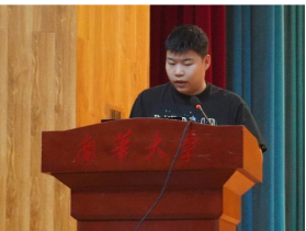 第五位分享者——成功上岸东华大学的环境214班石闽煌同学,以 “逆袭之路:从挂科到 211” 为题,坦诚讲述了自己大学期间因迷茫而挂科的经历,以及如何在考研过程中实现蜕变。他用亲身经历告诉大家,过去的挫折并不能决定未来,只要下定决心、合理规划、坚持不懈,就能实现逆袭。他分享了自己弥补知识漏洞、调整学习方法的过程,激励在场同学无论起点如何,都要相信自己的潜力,勇敢追求梦想。