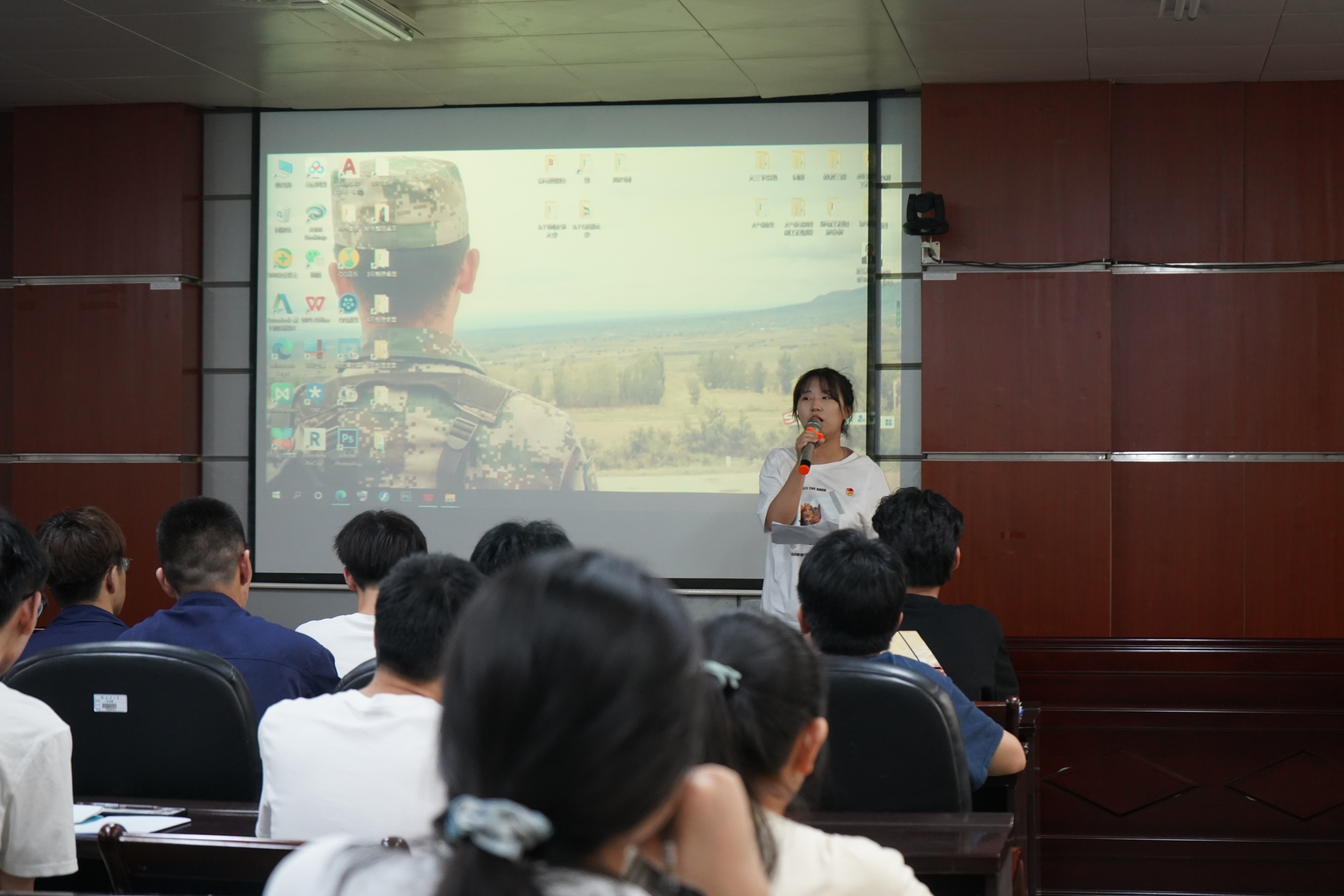 大会第二项由组织部部长薛钱蕾进行智慧团建录入操作指导。她进行了智慧团建相关活动的录入展示,强调了操作时需要注意的细节, 区别了主题团日活动和五四主题团日活动的针对对象的不同,并提及寒假期间进行的智慧团建的整改,我院的整改率达95%。