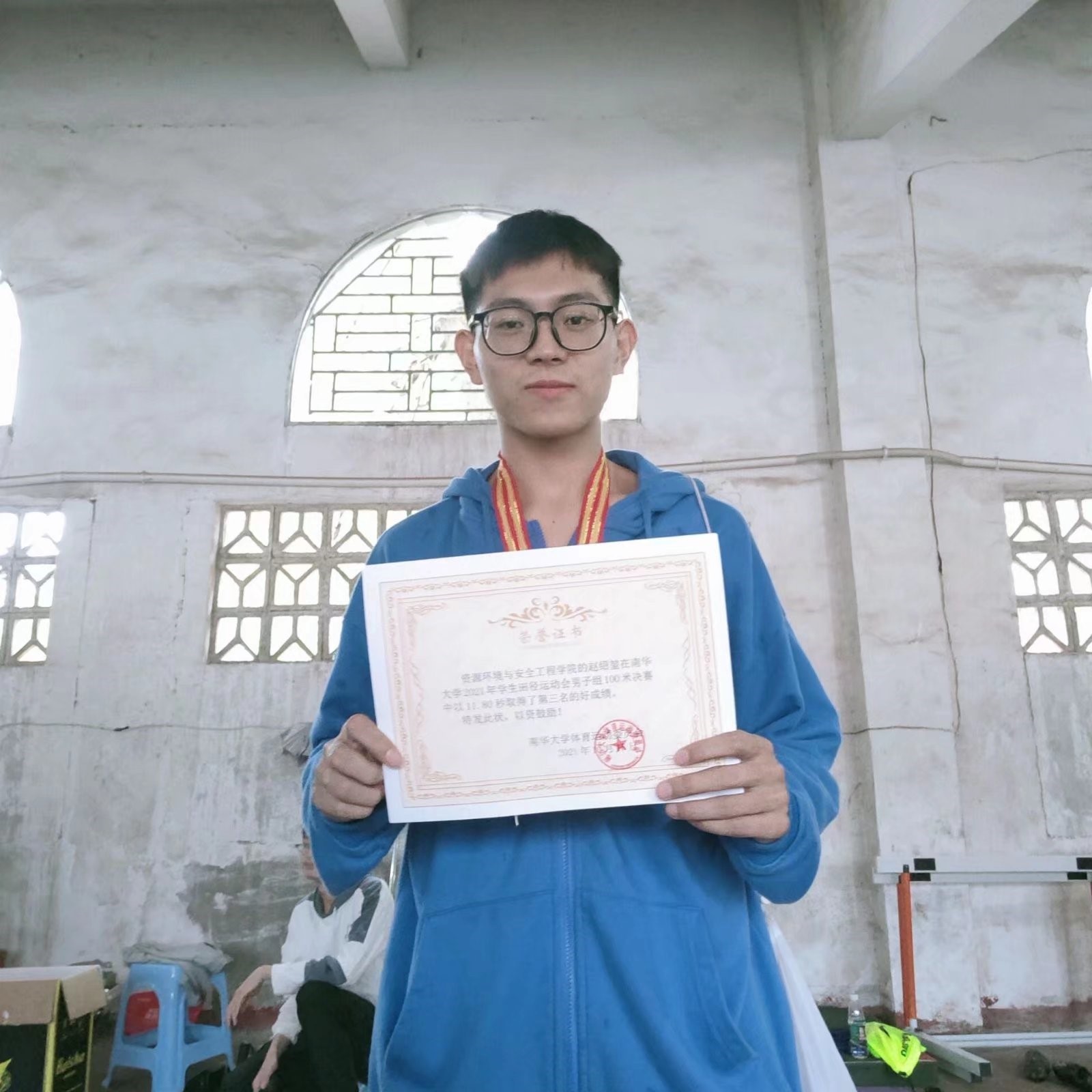 纵秋风凛冽,运动员们的热情却丝毫不减,且将心中所有的坚定化作赛场上的动力,在短短十几秒内绽放出信念之花。经过一番激烈角逐,我院运动员赵绍堃,在男子组100米决赛中以11秒80的优异成绩夺得男子组第三名。