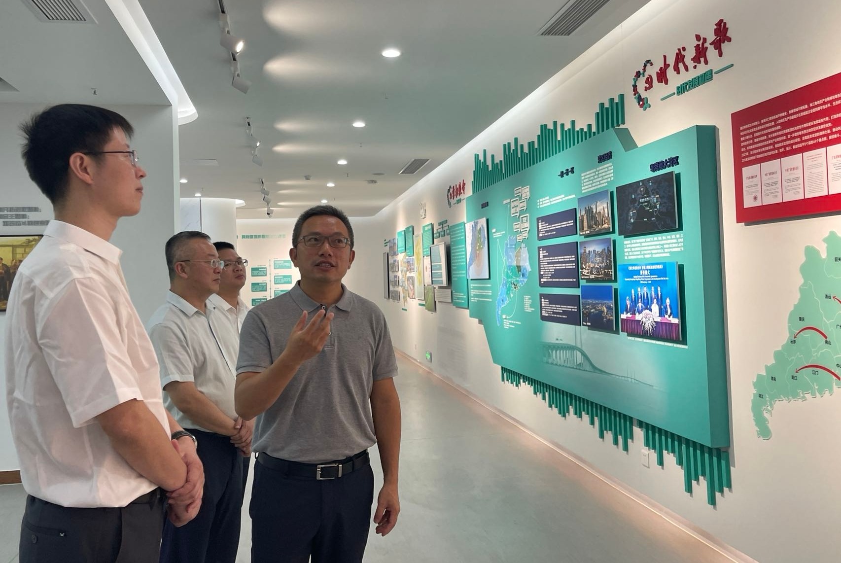 揭牌仪式结束后,成嶂旻带领大家参观了公司的展览馆,并亲自担任解说员,为大家讲解了公司发展历程及取得的成果。