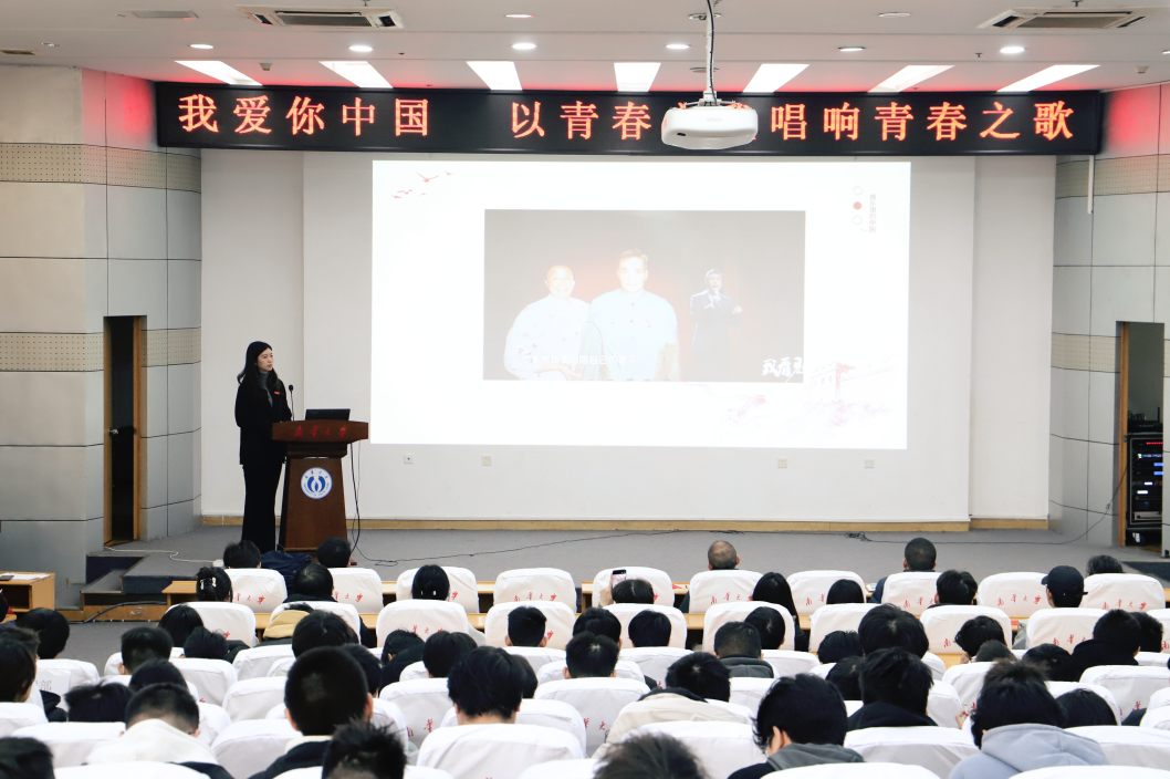 “我爱你中国,我要把最美的青春献给你,我的母亲,我的祖国......”2023年最后一个工作日,一堂别开生面的爱国主义教育在伟德bv1946图书馆报告厅举行,伟德国际victor1946辅导员赵玥正在为同学们讲授“我爱你中国——以青春之我唱响青春之歌”音乐思政课。