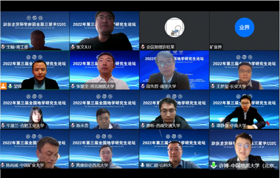 本次论坛于12月3日上午举行开幕式,当天下午线上召开了研究生成长圆桌会议,邀请了来自全国12所地学高校的青年学者重点围绕地学学科建设与发展趋势、研究生培养与成长等方面话题,开展了线上面对面的热烈研讨和交流,获万人观摩互动,为研究生及广大青少年学生提供了一个很好了解各高校地学培养计划、学生成长及未来行业走向的互动交流学习平台。我校段先哲副教授受邀做了“浅谈地质资源与地质工程研究生成长与职业规划”的圆桌会议报告。