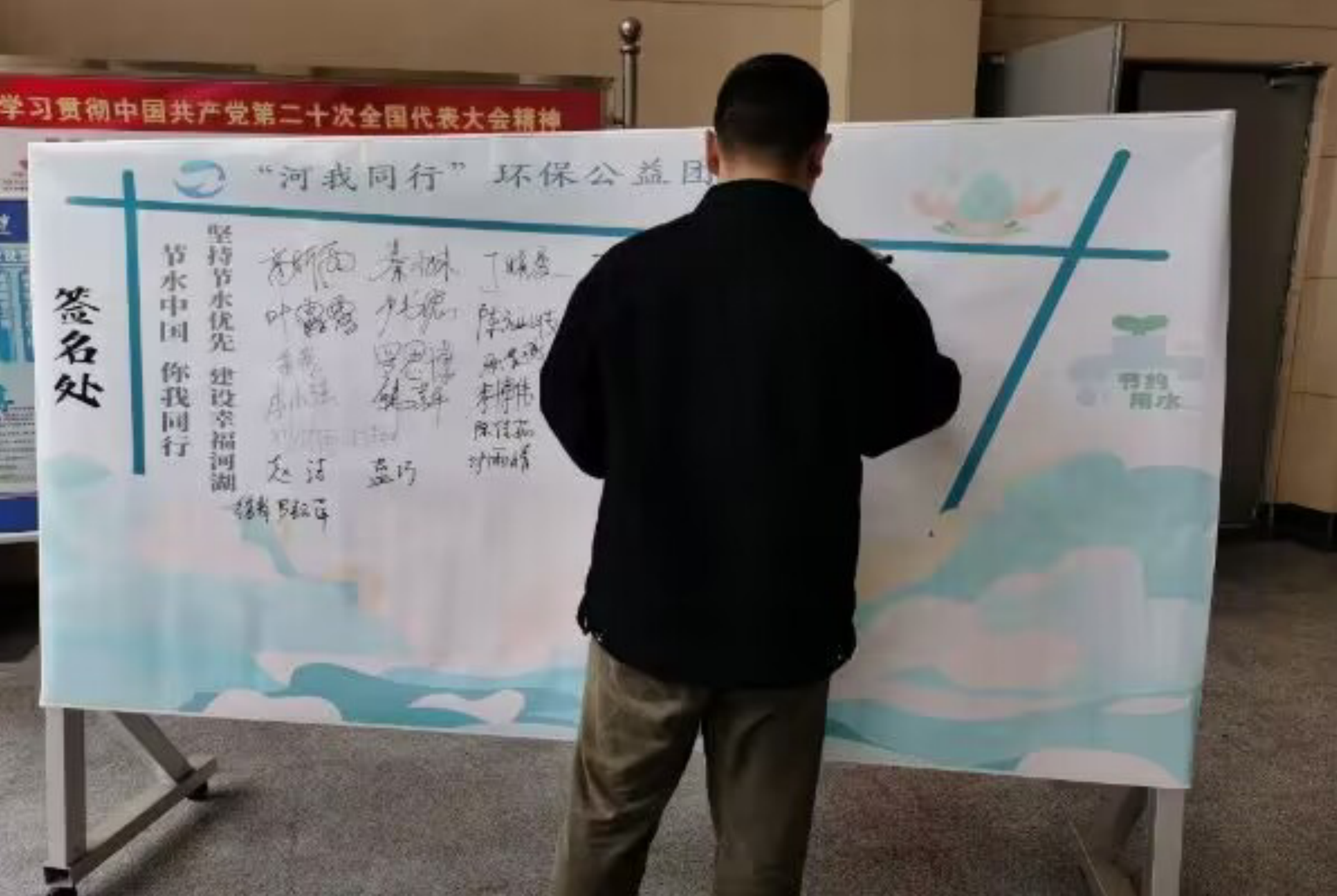 3月22日,“强化依法治国,携手共护母亲河”线下主题活动在新二教设点展开。“生活中的水大调查”“心有灵犀成语接龙”“节水小知识科普竞答”等互动小游戏吸引了众多同学驻足参与。同学们在互动环节收获到快乐,同时学到了“节水护水”知识,一齐争做“节水护水”的行动者。现场,工作人员让参与活动的同学在签名墙上留下自己的姓名,呼吁同学们与“河我同行”环保公益小组一同传递“节水、爱水、护水”精神,一起守护河湖,守护一方净水。
