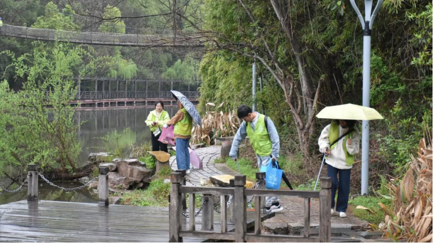 3月19日上午,“河我同行”环保公益团队前往平湖公园开展净滩行动。平湖公园外围道路湿滑,山路泥泞,公益小组志愿者们拿出工具慢行于湖岸,打伞观察着湖边的污染状况,细心清理着平湖周边垃圾,让湖岸环境焕然一新。